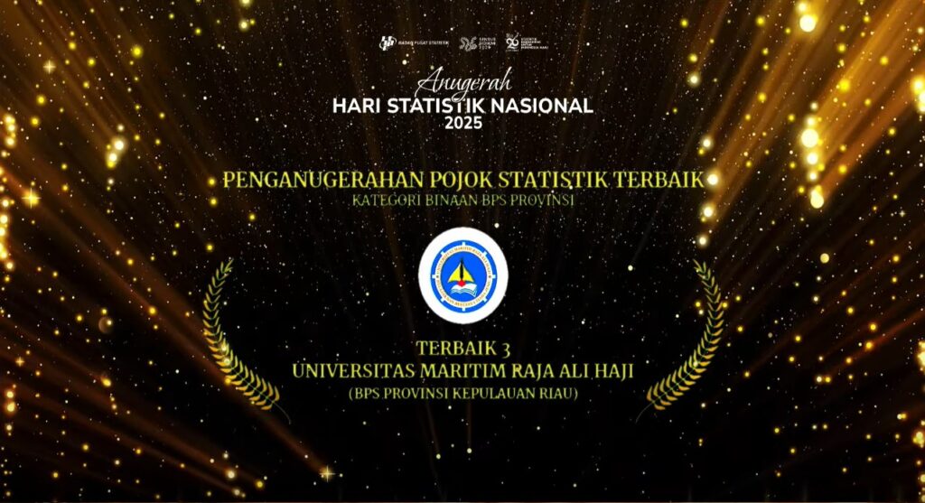 Jakarta – Universitas Maritim Raja Ali Haji (UMRAH) bangga dengan Pojok Statistik UMRAH yang berlokasi di Perpustakaan berhasil meraih nominasi terbaik ke-III dalam kategori Pojok Statistik Binaan Provinsi pada Anugerah Hari Statistik Nasional Indonesia 2025.